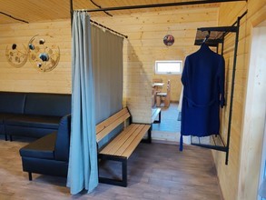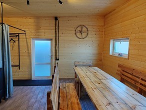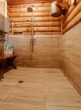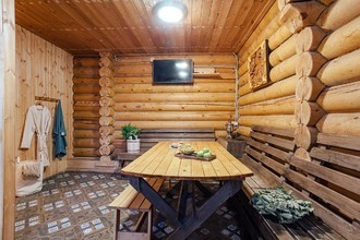 Банный комплекс с удобной парковкой полностью сделан из сруба натурального дерева, поэтому у вас сложится впечатление будто вы находитесь в настоящем Русском Банном подворье. Он включает в себя четыре русские парные на дровах вместимостью до 12 и до 16 человек, душевые с обливными ведрами для водных процедур, санузел, две уютных комнаты отдыха с удобной кроватью, где можно расслабиться и даже немного вздремнуть, а также просторную гостиную для посиделок с компанией.